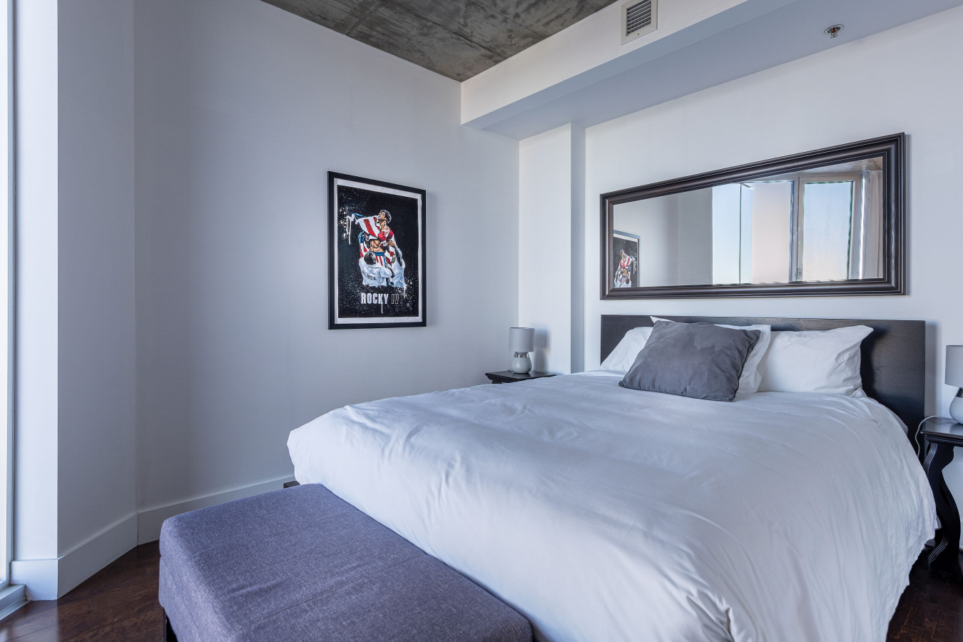 Chambre avec lit " queen " et téléviseur;