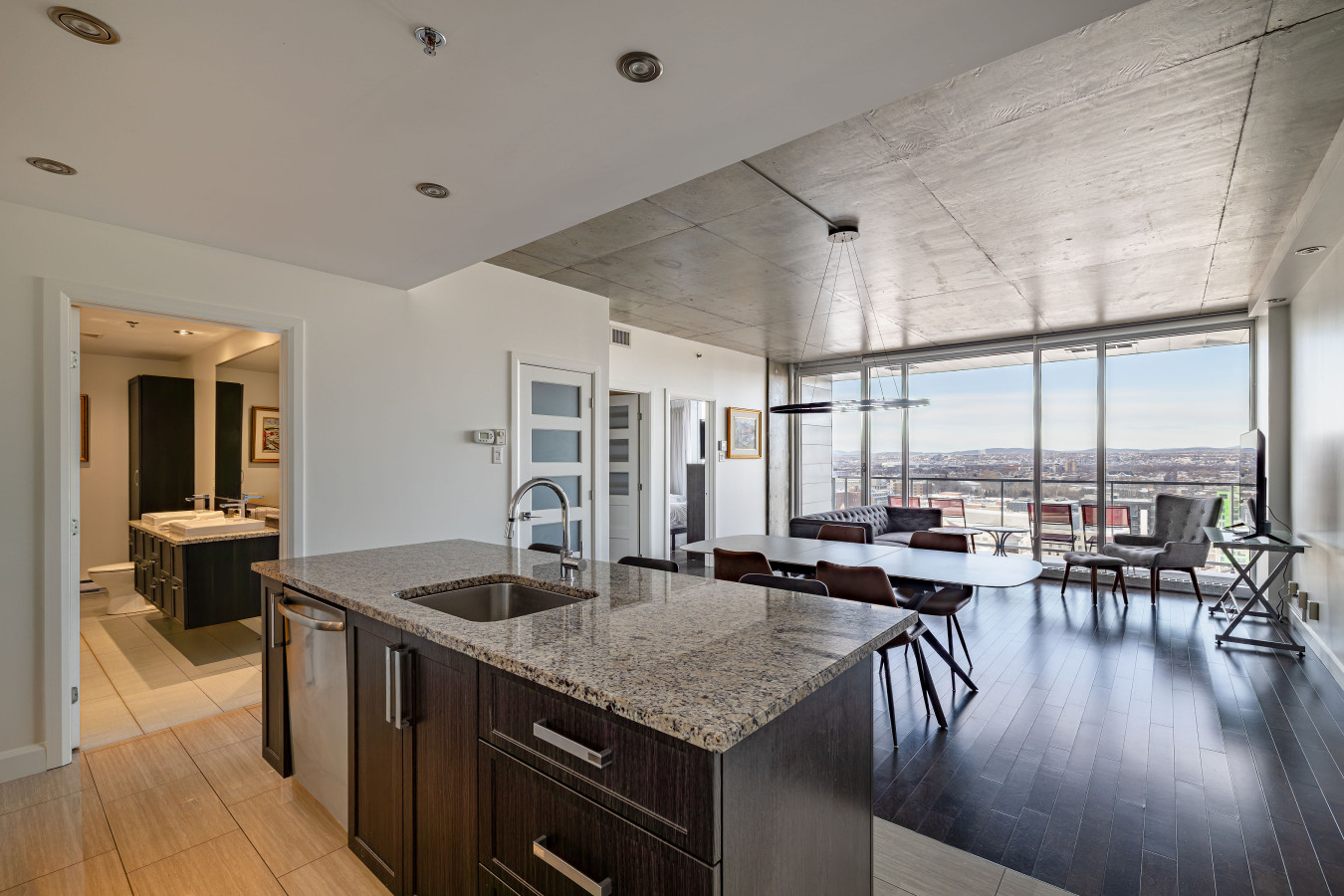 • Had a great time in this beautiful condo situated on foot to the Old Quebec District. After a full day of sightseeing, it was great to come back and enjoy the comforts of this dream home. The panormic windows and private balcony offer the most amazing views. Restaurants are great, but we also enjoyed the luxury of being able to cook some of our own meals, just like at home, and because I love to cook. Also, really enjoyed the indoor parking. All in all, I highly recommend this unique home away from home. I would have loved to have had this option for my honeymoon, several decades ago.
