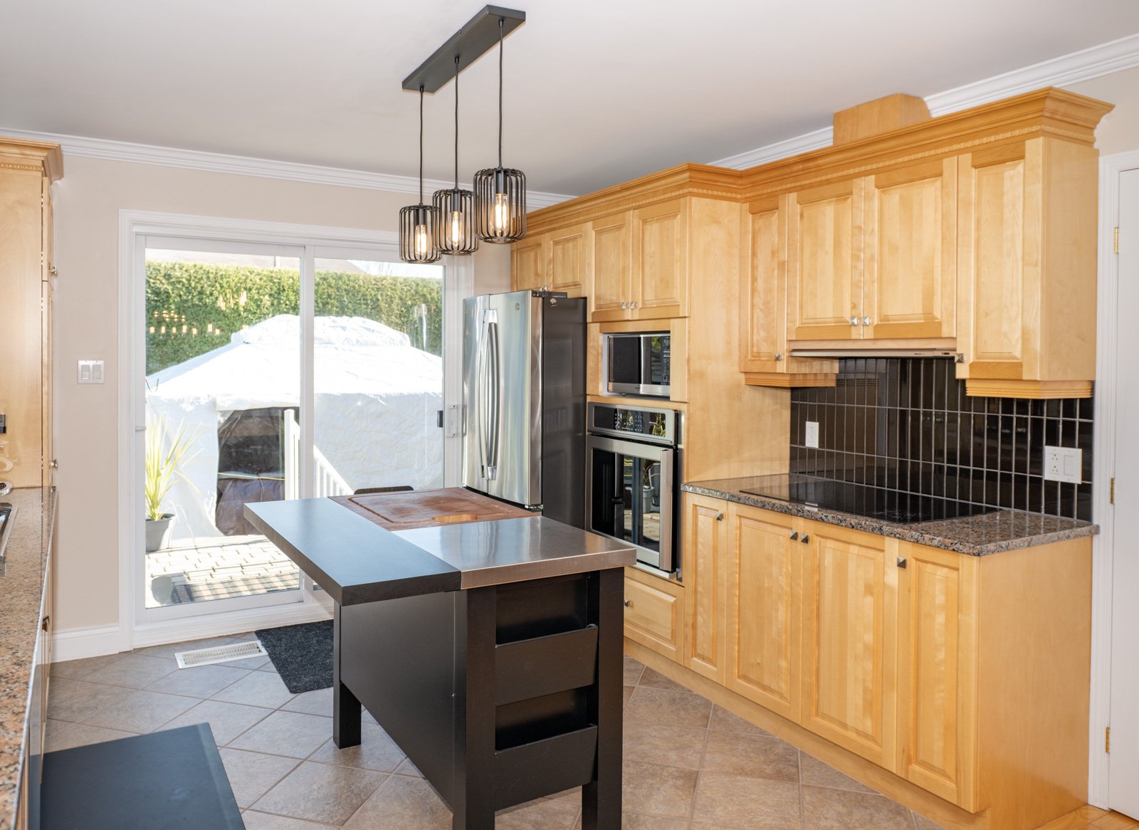 - Luminaires, habillage des fenêtres. Electroménagers: plaque de cuisson, four encastré, lave-vaisselle, réfrigérateur, micro-ondes, laveuse et sécheuse, balayeuse centrale et ses accessoires. Meuble ilot. Pergola et sa housse de protection hivernale, piscine et accessoires, SPA, borne de recharge électrique, BBQ.